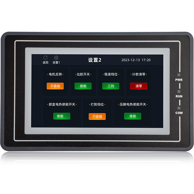 金璽HMI應用在超聲波控制上,安裝在控制機箱上對超聲波進行數據設定和監控。